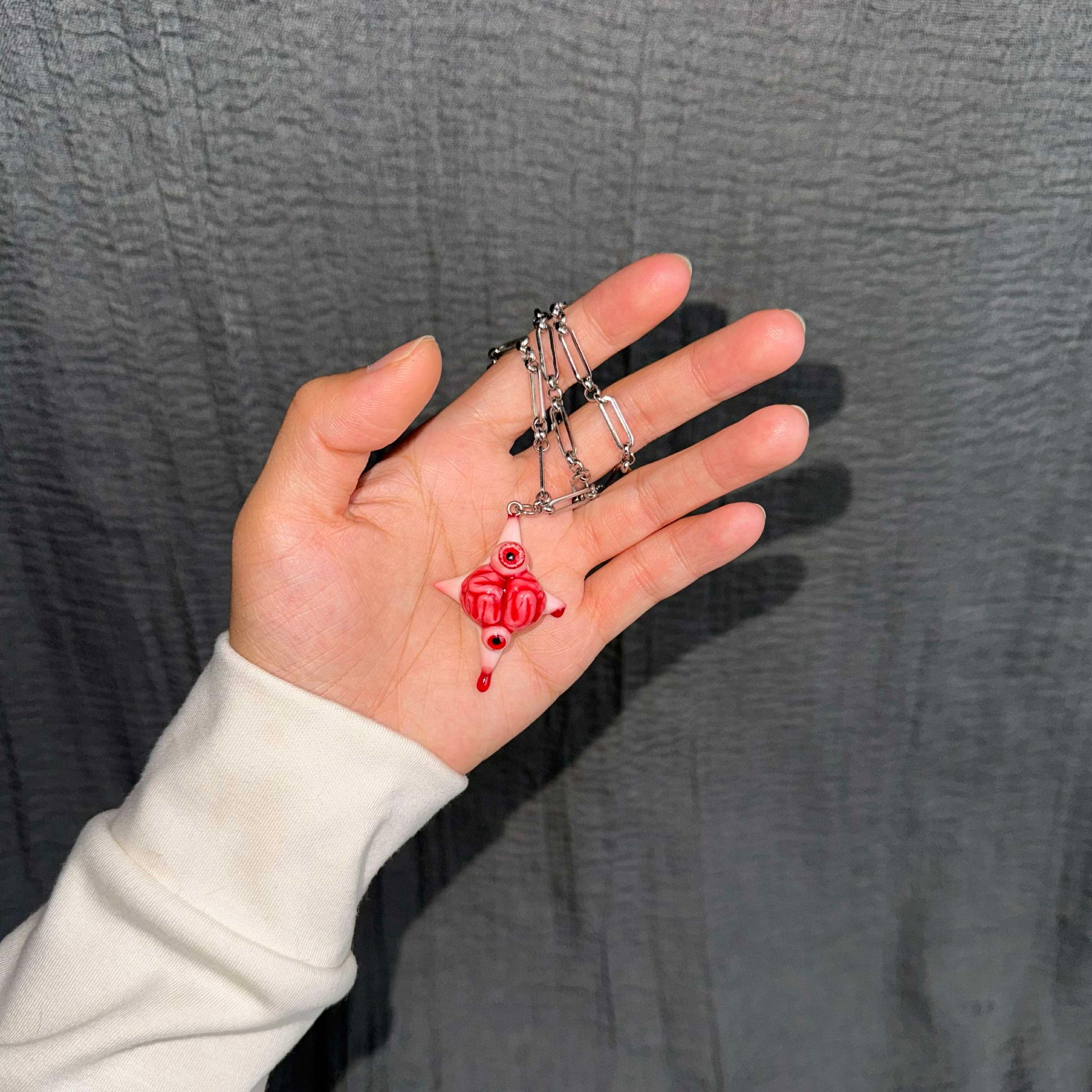 • Necklace: Comes with a stainless-steel link chain, industrial yet fluid, emphasizing the cold circuitry aesthetic.